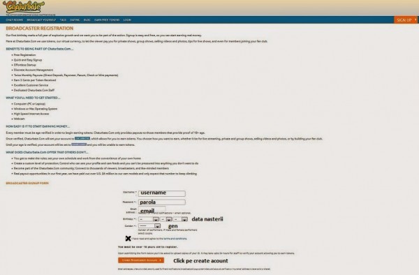 Acest tutorial contine informatii utile despre crearea unui cont de videochat pe site-ul Chaturbate.
