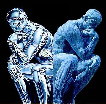 Les humains et les robots.... Je me souvenais du penseur.... Il etait si preoccupe, si concentre, si profondement enfonce dans ses pensees, ses reves.... J'aime imaginer son monde, je veux suivre son esprit decouvrir des unnivers inconnus.... Si silencieux et solitaire, il semble un robot avec des sentiments purs....