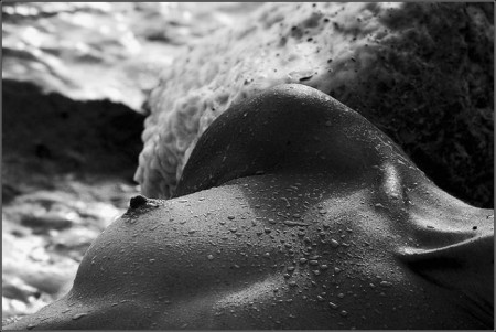 Sta pe spate, i se vede umarul si sanul drept. Chiar nu stiu ce era asa greu de observat...